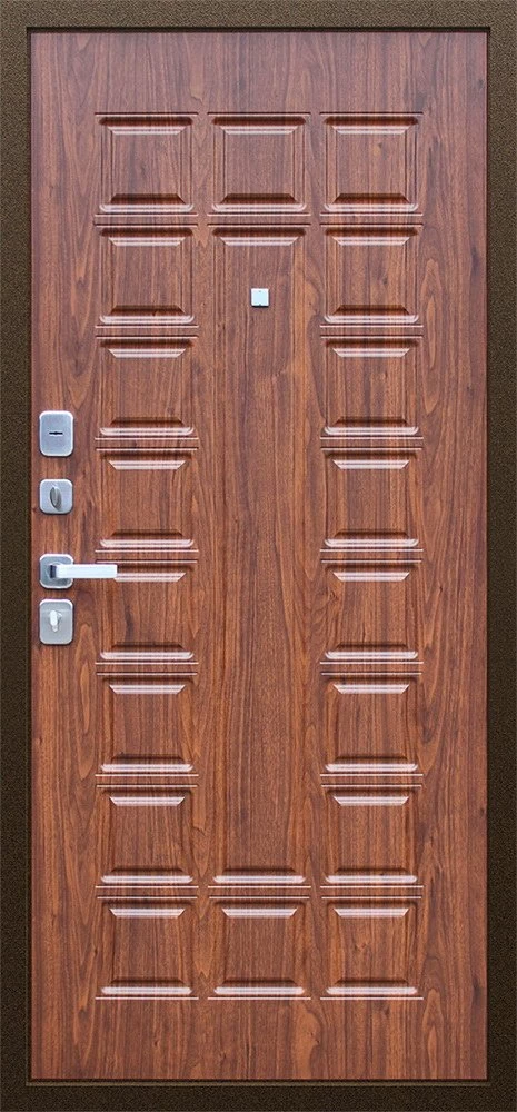 Надежная входная Дверь Спартак Орех темный премиум класса по цене 33 803 руб. Большая толщина стали защитит от проникновения в ваш дом, квартиру или коттедж. Используется очень качественная фурнитура: замки, цилиндры, ручки, защелки. Покрытие и отделка двери изготовлено под внимательным контролем производителя. Дверь имеет долгий срок службы и гарантию.
